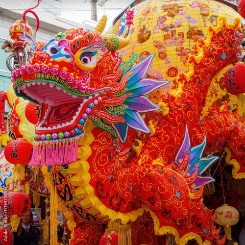 Vibrant Dragon Float in a Festive Celebration