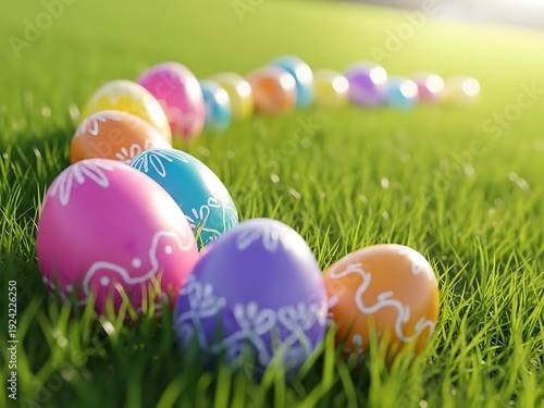 Vibrant easter eggs in a grassy field a colorful easter basket concept