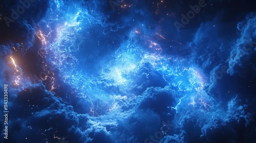 Vibrant electric blue lightning effects beautifully striking against a dark backdrop, creating dynamic visuals
