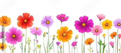 Vibrant Floral Border with Cosmos Flowers against a Clean White Background