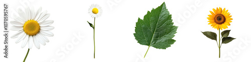 Vibrant floral collection featuring a variety of colorful flowers and lush green leaves showcasing the beauty and vitality of nature This image includes a daisy a sunflower