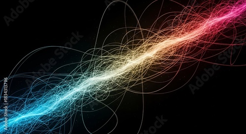 Vibrant flowing lights streak across a dark canvas creating a sense of movement and energy