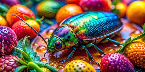 Vibrant Food Photography: Insect Scale Texture with Spray Paint Art on Delicious Dishes