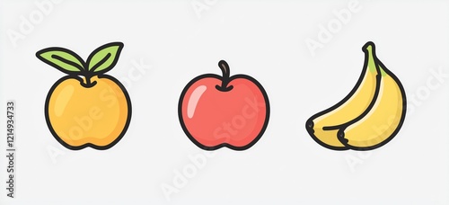 Vibrant Fruit Icons Peach Apple Banana Illustration Graphic Design Digital Art