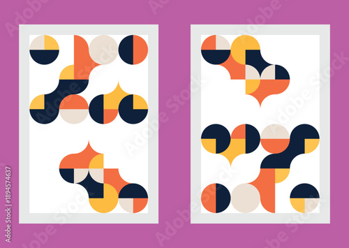 Vibrant geometric abstraction featuring interconnected circles and arcs in a modern style Vector