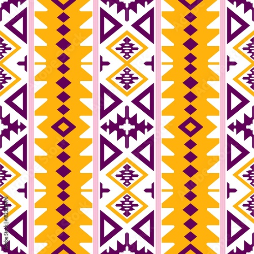Vibrant geometric pattern with tribal influences perfect for eye-catching textile design, adding a bold and cultural touch to your creative projects