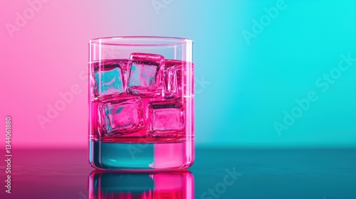 Vibrant Glass with Ice Cubes and Colorful Backgrounds Creating an Eye-Catching Beverage Scene