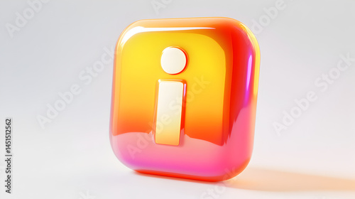 Vibrant Gradient Info Button Design, 3D Render of Glossy Icon with Rounded Edges, Information Symbol. Stunning Visuals for Interfaces.