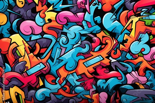 Vibrant Graffiti Shapes and Lines Wallpaper, Abstract Graffiti Wallpaper, Graffiti Background, AI Generative