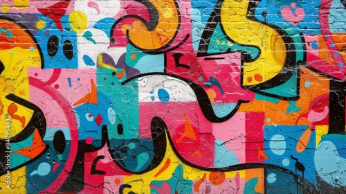 Vibrant Graffiti Street Art on Colorful Brick Wall
