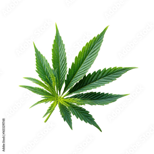 Vibrant green cannabis leaf detailed veins against black background plant marijuana, Isolated On Png Transparent Background