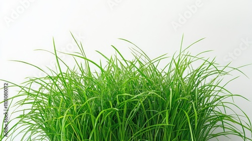 Vibrant green grass flourishing against a pristine white background, creating a fresh and lively visual contrast.