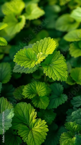 Vibrant green leaves bask in sunlight, a lush tapestry of natures intricate design