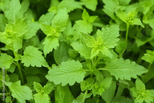 Vibrant Green Lush Mint Leaves Close Up Background