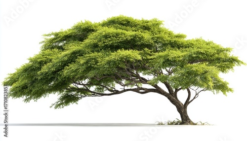 Vibrant Green Tree with Spreading Canopy Isolated on White Background