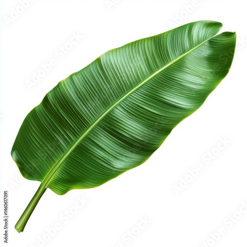 Vibrant green tropical leaf, exhibiting prominent veins