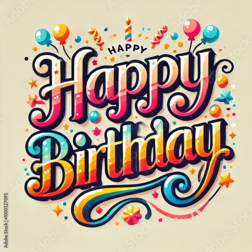 Vibrant Happy Birthday Typography with Balloons and Confetti