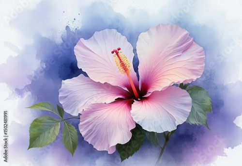 Vibrant Hibiscus Flower with Soft Watercolor Background