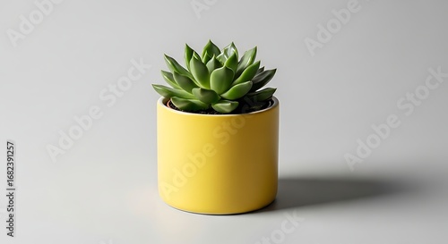 Vibrant Indoor Plant: Green Succulent in a Modern Yellow Pot for Home Decor and Positive Atmosphere