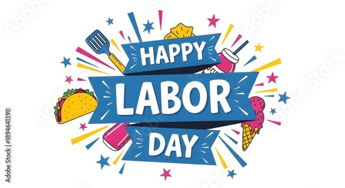 Vibrant labor day celebration graphic with patriotic and festive elements