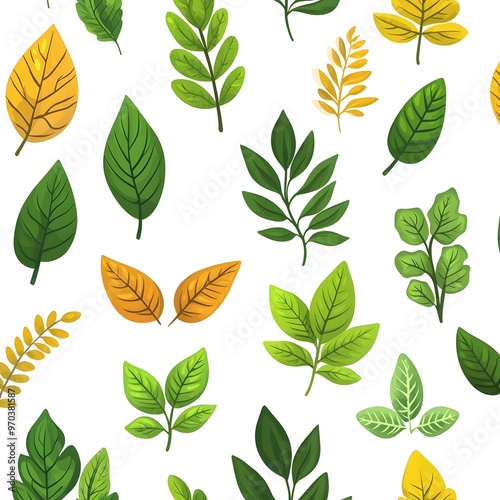 Vibrant Leaf Pattern with Diverse Foliage on Crisp White Background