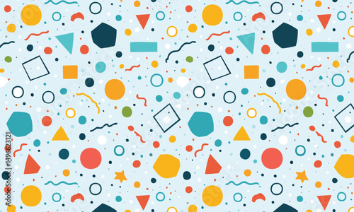 Vibrant Memphis Pattern with Lines and Dots Style Seamless Background