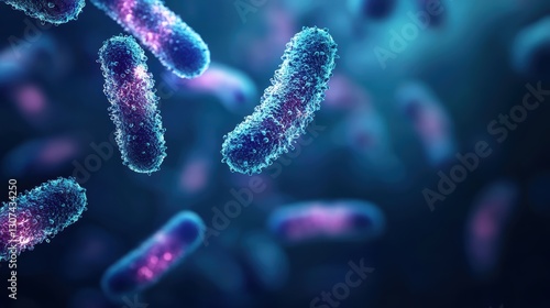 Vibrant microscopic view of bacteria in a fluid environment