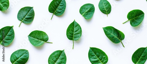Vibrant Moringa oleifera leaves arranged aesthetically on a clean white background showcasing their lush green color and texture.