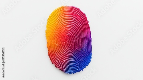 Vibrant multicolored fingerprint on white background, symbolizing identity and uniqueness. Ideal for design concepts and creative technology.