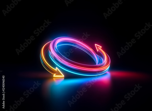 Vibrant neon arrows form a circular, dynamic loop against a dark background. The glowing, colorful design creates a sense of continuous motion and renewal.