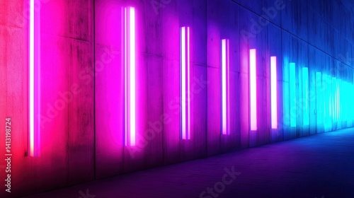 Vibrant neon light illuminating a modern concrete corridor, creating a dynamic atmosphere