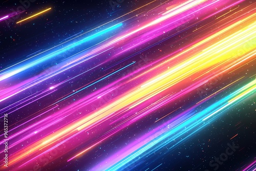 Vibrant neon light streaks in various colors create a dynamic, energetic visual effect.