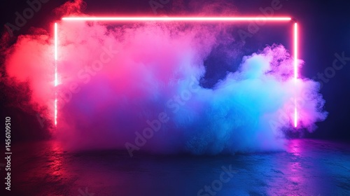 Vibrant Neon Lights Illuminate Smoke in a Dynamic Atmosphere