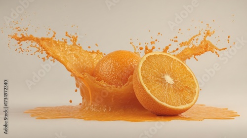 Vibrant Orange Juice Splash with Citrus Fruit Composition, Perfect for Refreshment and Healthy Lifestyle Concepts