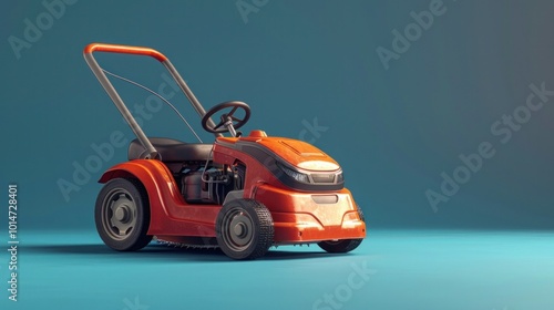Vibrant Orange Ride On Lawn Mower Parked on Solid Background Powerful Engine Powered Gardening and Landscaping Equipment for Yard and Lawn Maintenance