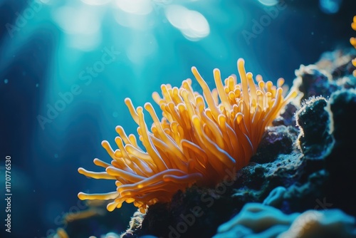 Vibrant Orange Sea Anemone Underwater Bloom