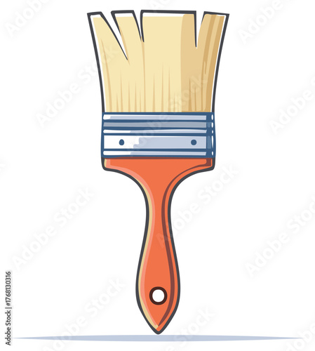 Vibrant paint brush with orange handle and cream bristles for creative art projects