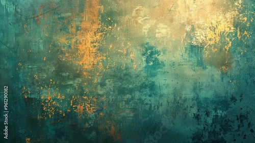Vibrant patches of turquoise and gold with soft textures create a serene Post-Impressionist background