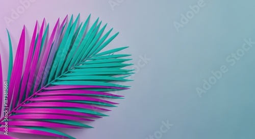 Vibrant Pink and Teal Palm Leaf on Gradient Background