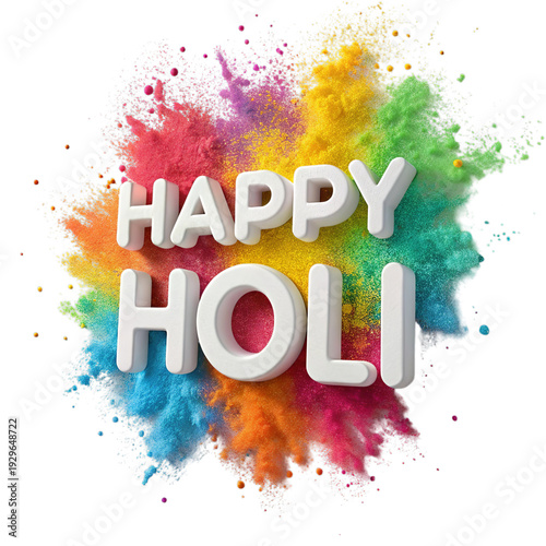 Vibrant powder explosion behind Happy Holi greeting in high Resolution.