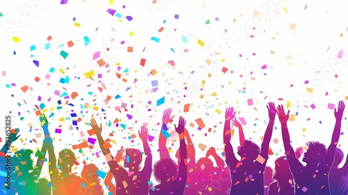 Vibrant Pride Rally Banner Featuring Diverse Crowd with Colorful Confetti for Event Announcements