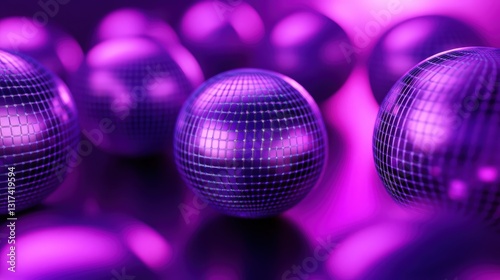 Vibrant Purple Disco Balls on a Fuchsia Background, Symbolizing Nightlife, Celebration, and Energy. Ideal for Party Invitations, Music Events, and Nightclub Promotions.