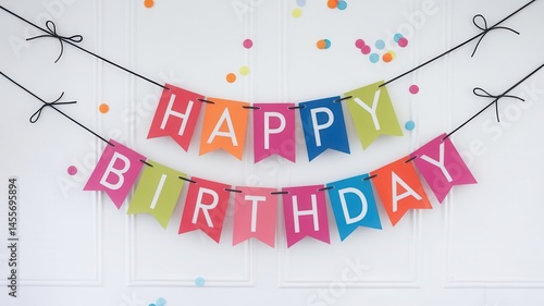 Vibrant Rainbow Happy Birthday Banner with Confetti