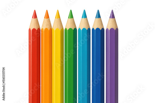 Vibrant rainbow-colored pencils standing upright on clear surface, showcasing artistic potential for graphic design