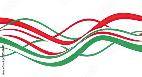Vibrant red and green ribbons flowing in dynamic waves
