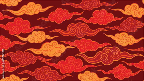 Vibrant red and orange clouds pattern on a dark red background