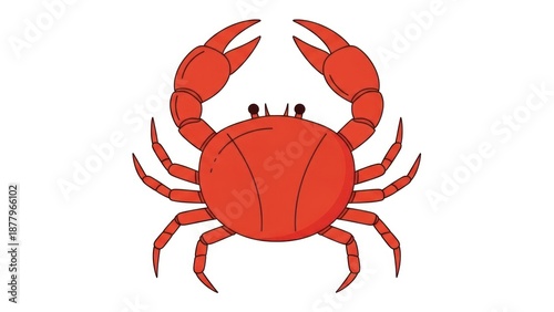 Vibrant red crab illustration isolated on white background for design