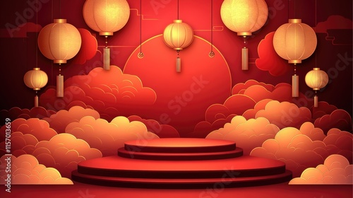 Vibrant red lanterns in traditional asian decorative setting. Happy Chinese New Year