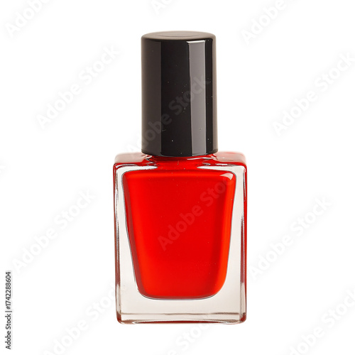 Vibrant Red Nail Polish Bottle with Glossy Finish on a White Backdrop