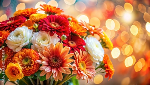 Vibrant Red Orange White Flower Bouquet Pastel Abstract Background Stock Photo